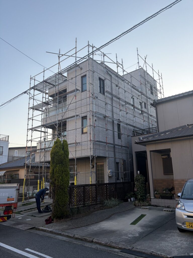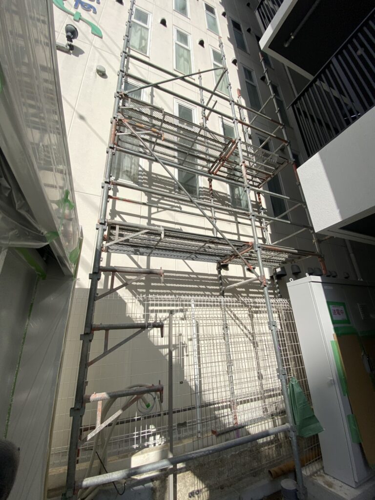 足場工事とは、建設現場での作業をより安全に確実に作業をするための必要な工事です。 私たちは新築・改修足場工事を主体とし、事業に取り組んでおります。